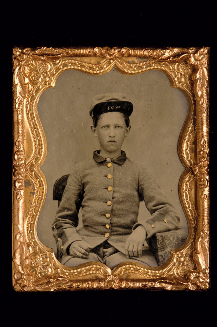 The boy—just seventeen years old—stares into the camera, his eyes blank or perhaps a little sad, hands open on his legs. Sweat has matted the hairline along his temples. He wears a gray wool uniform, and the brass buttons down its front glint slightly gold. On the bill of his soldier’s cap, called a kepi, are written the letters “T. G. W.” They stand for Thomas G. Wood. And days after this photo was taken, he was dead. Tommie Wood, of Social Circle, Georgia, was drummer boy for Company H of the 11th Georgia Infantry in the Army of the Confederate States of America.