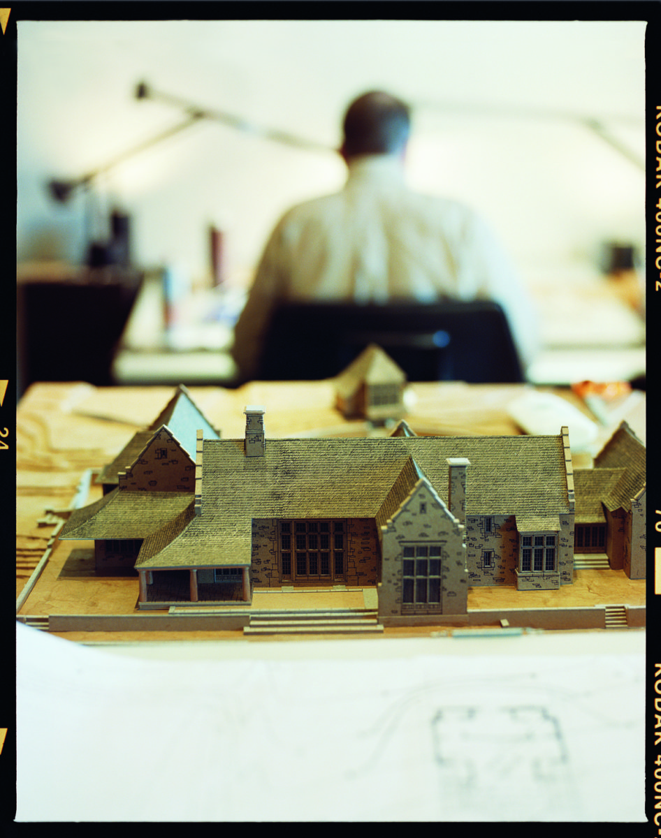 Bobby McAlpine and I were seated at a round conference table at the offices of McAlpine Tankersley Architecture in Montgomery’s Cloverdale neighborhood. Around us, theater curtains spilled from steel rods, giving shape and texture to the cavernous second-floor loft. A dozen or more people leaned over drafting tables, penciling away on broad, crisp sheets of paper. Every home the firm designs is drawn by hand, down to the individual wood roofing shingles on the exquisite scale models. (“It communicates quality,” Greg Tankersley, McAlpine’s partner, later explained. “You can drive down the street and tell which buildings were designed on computer. They have no soul.”) Everything around me was so, well, architectural—and there was Bobby McAlpine showing me a set of crumpled 4-by-5-inch pages, peeled from an everyday notepad and inked to the margins with loosely rendered floor plans of a house for a Tulsa oil prospector. McAlpine, I was surprised to learn, does most of his work back-of-a-napkin-style on telephone notepads.