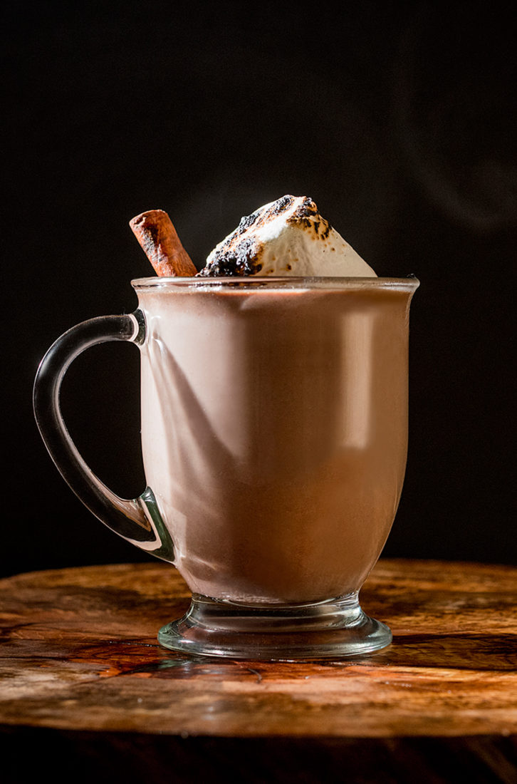 Add chocolate to another saucepan over low heat. Strain milk over the top and whisk to dissolve. (Makes enough for 4 drinks)