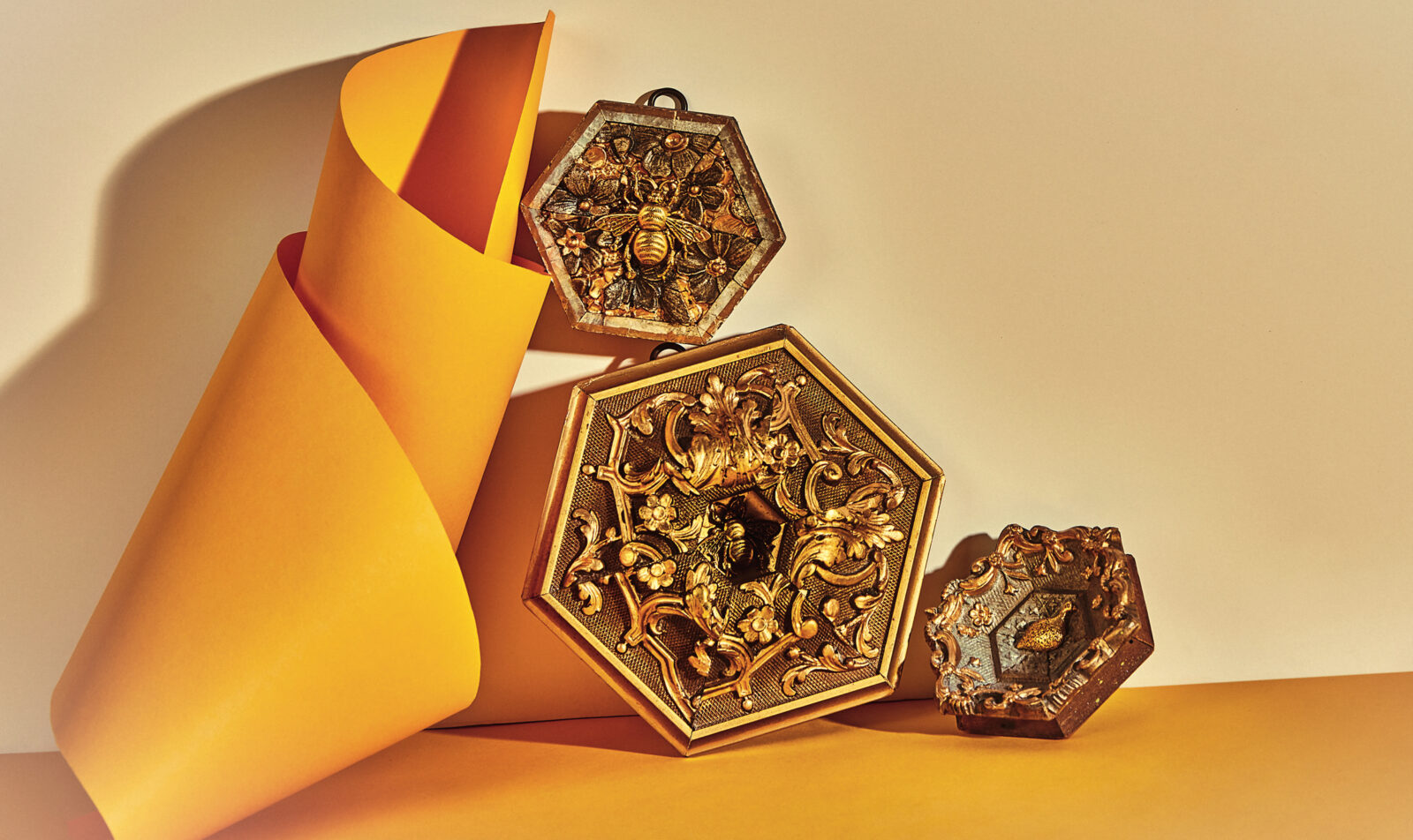 While trimming a two-hundred-year-old textured frame to fit an oil painting for a 2012 exhibition at his gallery–meets–antique store, Trace Mayer had a realization: The frame outshone the artwork. One of his assistants joined together the frame’s leftover corners to create a miniature quadrangle, and, inspired, Mayer added a gilded bee he had collected years earlier. “It was an aha moment that felt like fitting in the missing piece of a jigsaw puzzle,” he says. Drawing on his background in physics and fine art, Mayer played with forms and proportions to make more, gaining such a following for the collectible pieces (admirers included the late G&G contributor Julia Reed) that he began creating them full-time. Today Mayer and his team make original Museum Bees daily, using mostly circa-1860 frames or bourbon barrels to showcase an ornament that they might borrow from, say, a 1960s brooch or an heirloom belt buckle, or design themselves. “There is a level of collaboration going on,” Mayer says. “I’m reimagining an unsung artist’s work from over a century ago.” As an antidote to art-world pretensions, Mayer prices each Bee the same. “That way, the value is in the eye of the buyer, and you’ll pick the piece you love the most—the one that tells a story to you.”