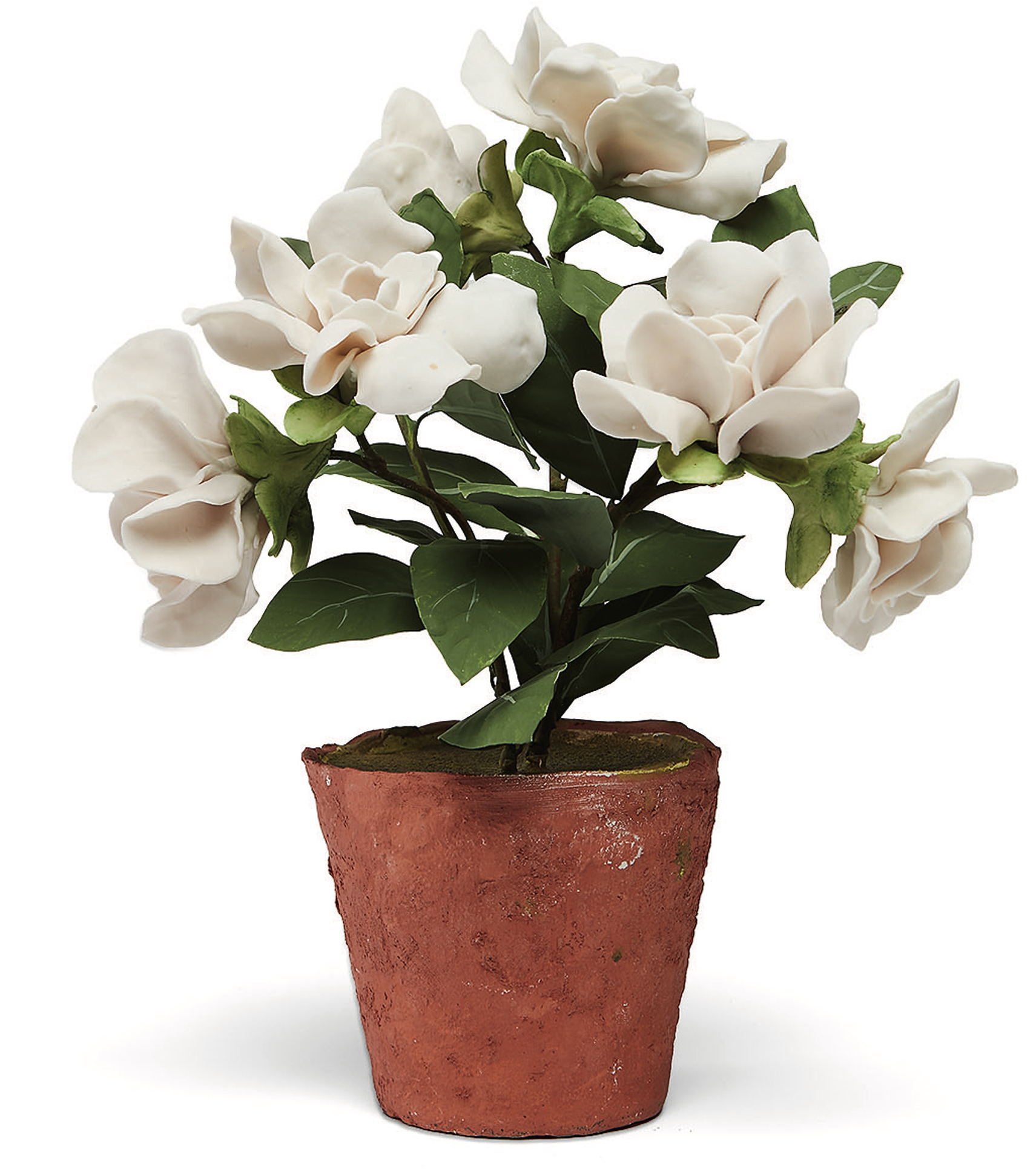Pamela Tidwell’s hyperrealistic flower sculptures often begin with a careful study of the blossoms in her garden: foxgloves, delphiniums, English roses, poppies. “You think you know what something looks like until you try to make it,” she says. She cuts leaves out of copper and incises such intricate details as veins and caterpillar bite marks before wire cutting and soldering to make a frame. Next, the fun part: Tidwell shapes, fires, and glazes delicate porcelain blooms, each unique. “There’s a lot of measuring, standing back and looking, and, finally, just a feeling I follow.” That instinct has guided Tidwell for more than three decades; she started out making porcelain vegetables inspired by the mid-twentieth-century English artist Lady Anne Gordon, and turned to flower sculptures full-time a little more than a decade ago. Now Tidwell takes custom orders, often adding a whimsical butterfly, snail, or caterpillar to complete a plant’s look. “People put the pieces on coffee tables and mantels,” she says, “It means you always have flowers in your house.”