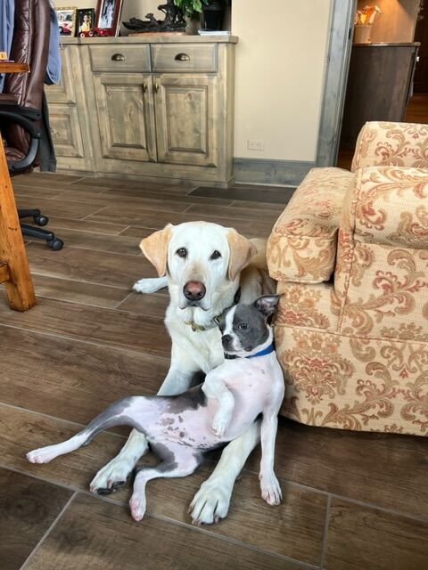 Zeus and Beau, Labrador retriever and Boston terrier